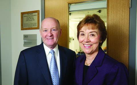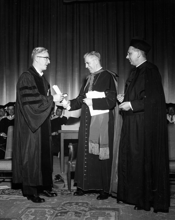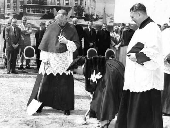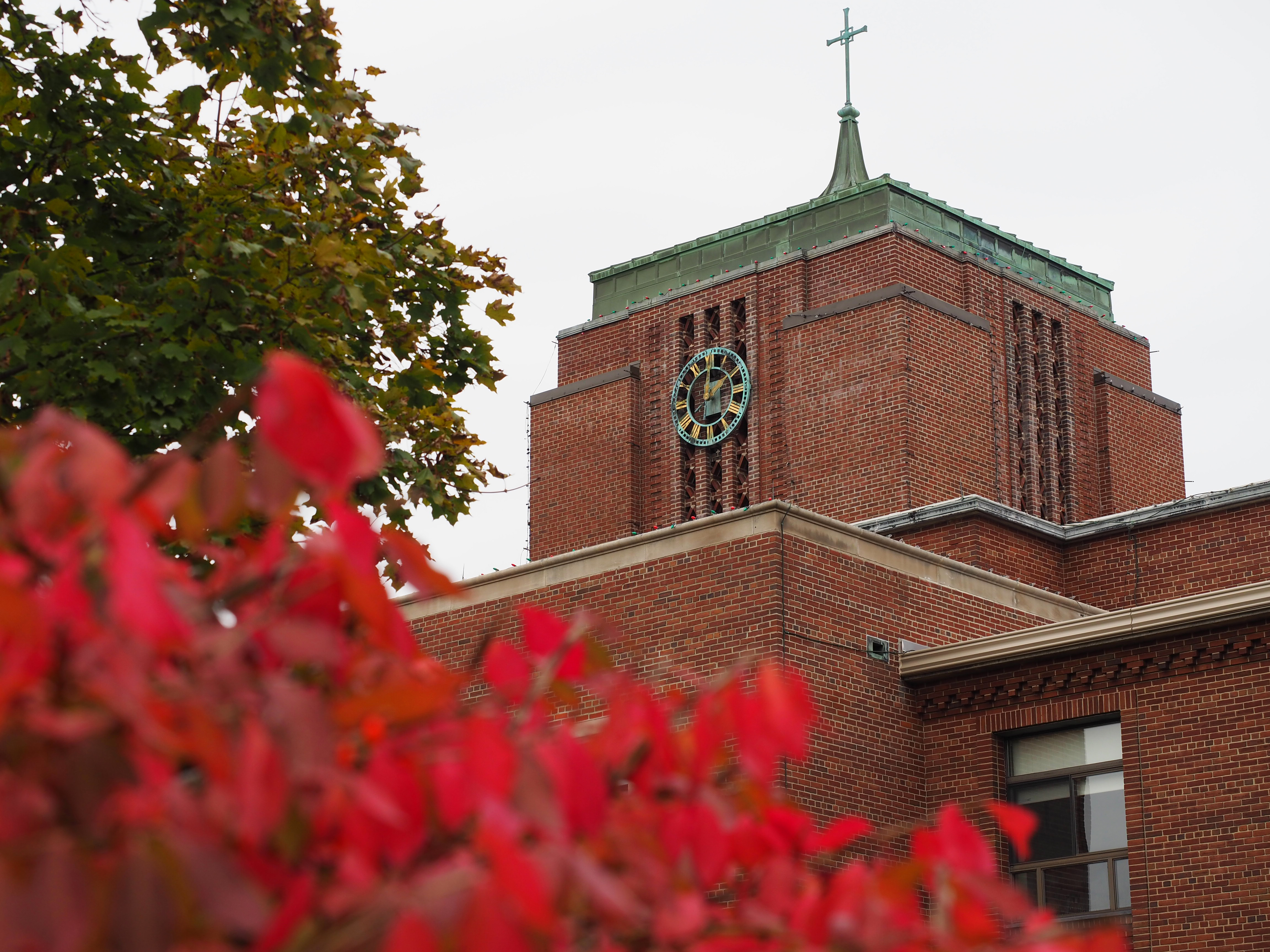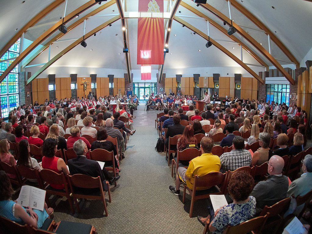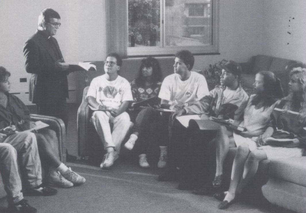 On October 29, 1994, Bishop Joseph T. O’Keefe presided at the dedication of the Panasci Family Chapel, dedicated at Henry Panasci’s request to the Madonna della Strada (Our Lady of the Way). That title connects Le Moyne’s chapel to the first Jesuit church, Santa Maria della Strada in Rome, which was given to the Society of Jesus in 1542 by the pope. With a 400-seat main chapel, a small prayer chapel for daily mass, a spacious community room, and ample office space for campus ministry, the new facility provides an exceptional setting for worship, ministry and fellowship. Beyond this, its prominent location opposite Grewen Hall, combined with the distinctiveness of its architectural profile, stand as a constant reminder to all of the beliefs and values that continue to animate Le Moyne College.